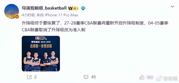 在3月的第一个周末,CBA俱乐部开了一个会,虽然没发正式通知,但消息很快传开了,会上正式决定从2027-28赛季开始,CBA要恢复升降级制度,这不是试点计划,也不是传闻,而是实实在在的安排,去年休赛期就有风声,结果NBL球队一下子增加好几支,都在积极准备材料和拉赞助,想争取进入CBA的机会,这说明大家真的相信了,以前没有通道,现在有了希望。不过另一件事让人有...